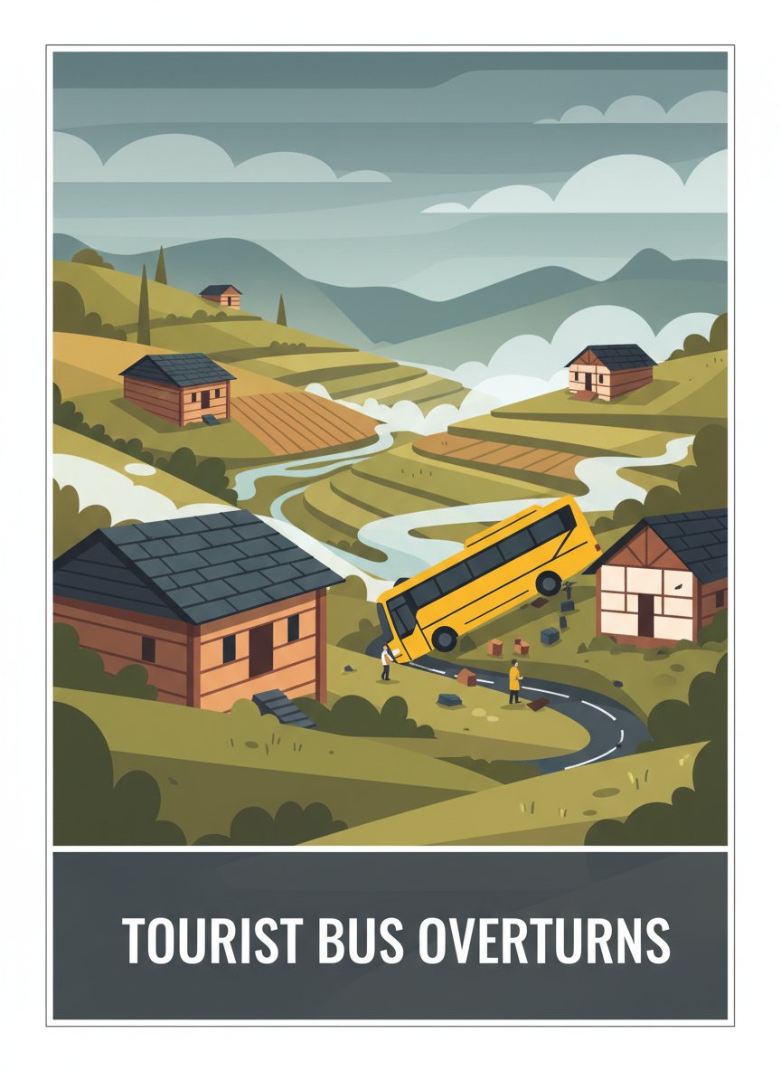 A tourist bus carrying passengers from Delhi overturned near Kullu on Wednesday, May 29, resulting in injuries to 15 individuals. The accident occurred on the Kullu-Manali national highway, and all injured were promptly admitted to a local hospital for treatment.